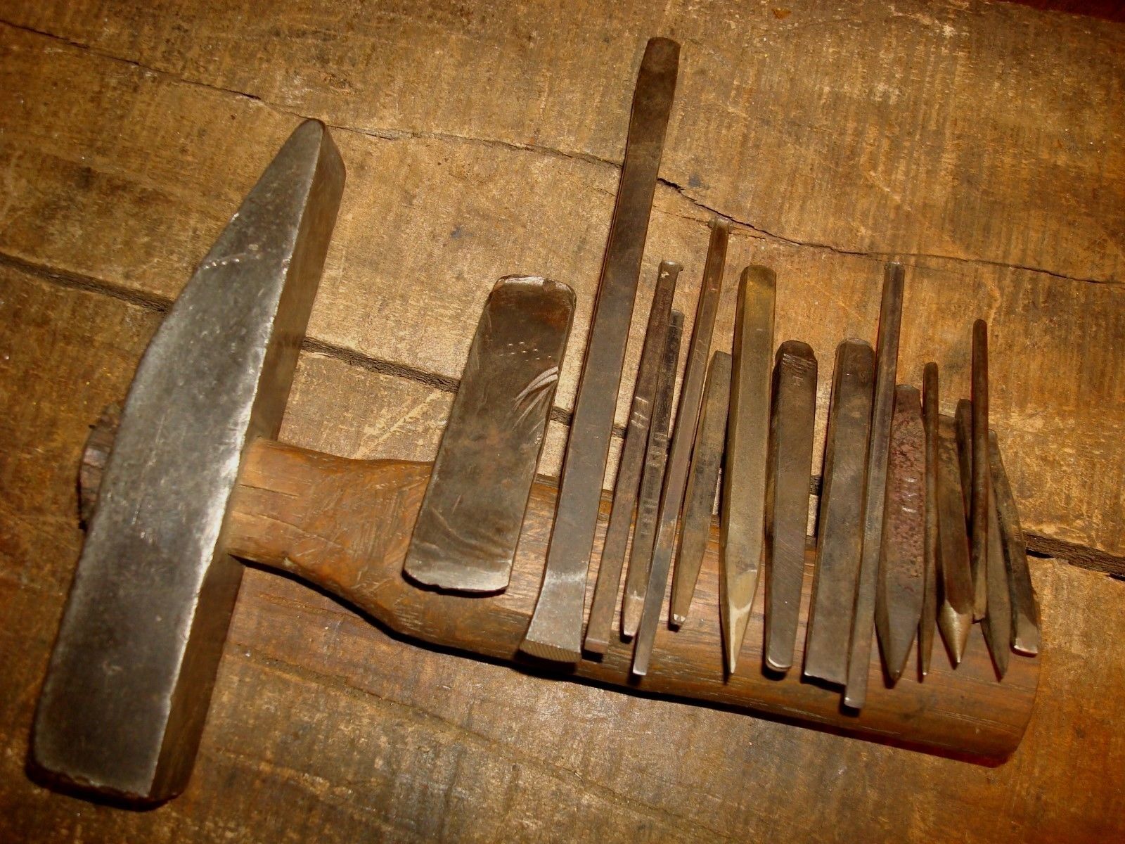 Title (ebay affiliate link): VINTAGE JEWELERS HAMMER & REPOUSSE PUNCH STAMP TOOL LOT BLACKSMITH TOOLS