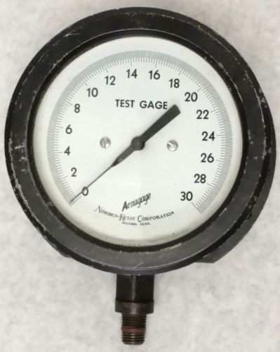 Vintage Norden-Ketay Corp. Test Pressure Black Gauge, Acragage 0-30, Steampunk