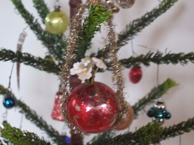 Title (ebay affiliate link): 2 Antique Glass Tinsel Flower Basket Christmas Ornament