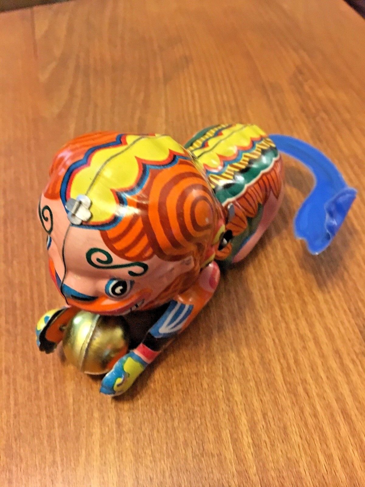 Title (ebay affiliate link): Vintage Tin Toy Wind Up Daguen shi zi Chinese Lion with Ball