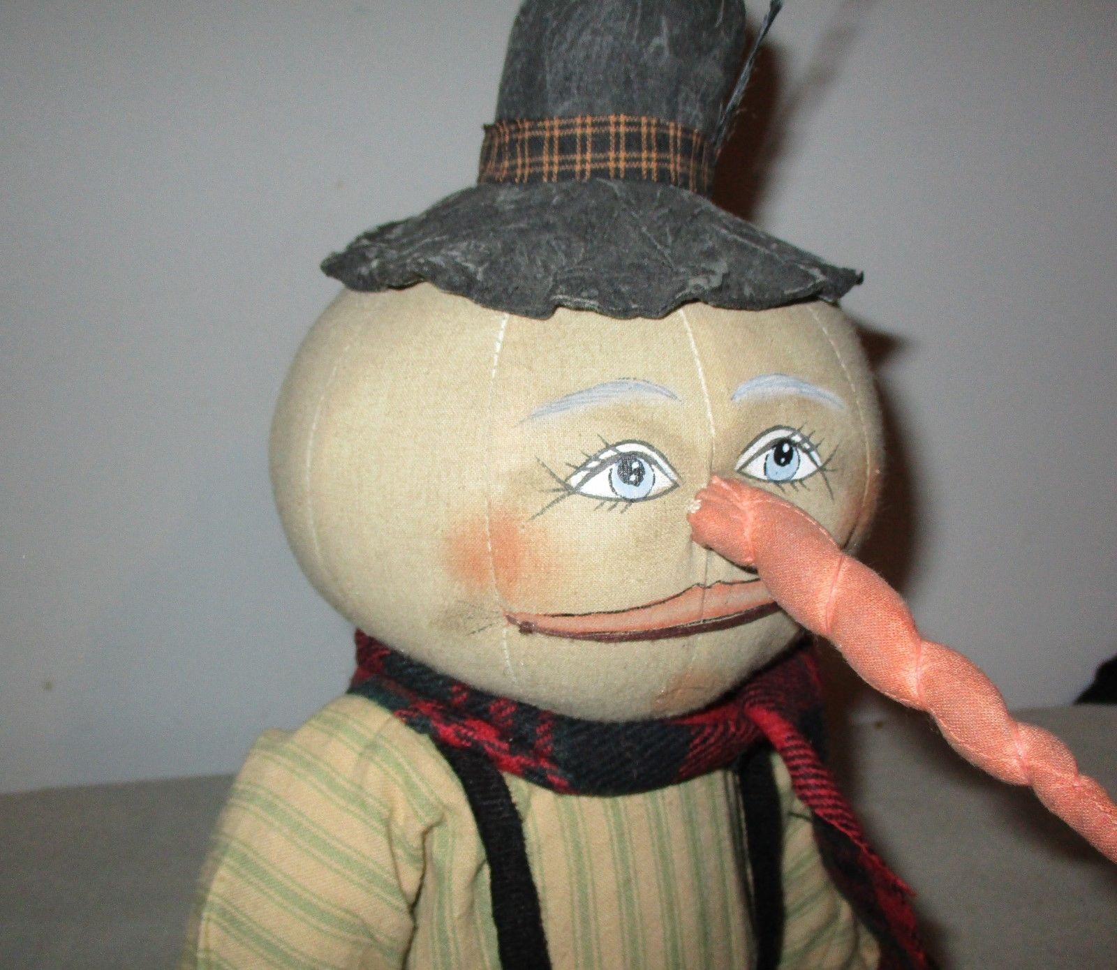 Title (ebay affiliate link): Folk Art Hand Made Snowman- with shovel- 22" sitting