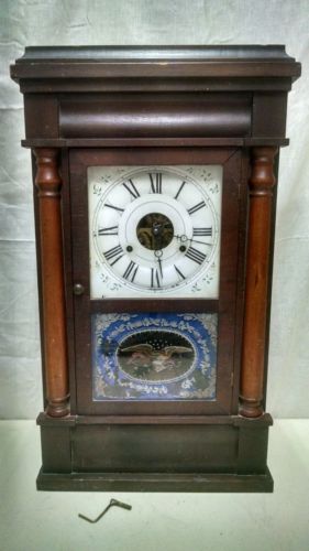 Title (ebay affiliate link): ANTIQUE SETH THOMAS MANTEL CLOCK 2 WEIGHTS W/ PAINTED AMERICAN EAGLE ON DOOR 26X