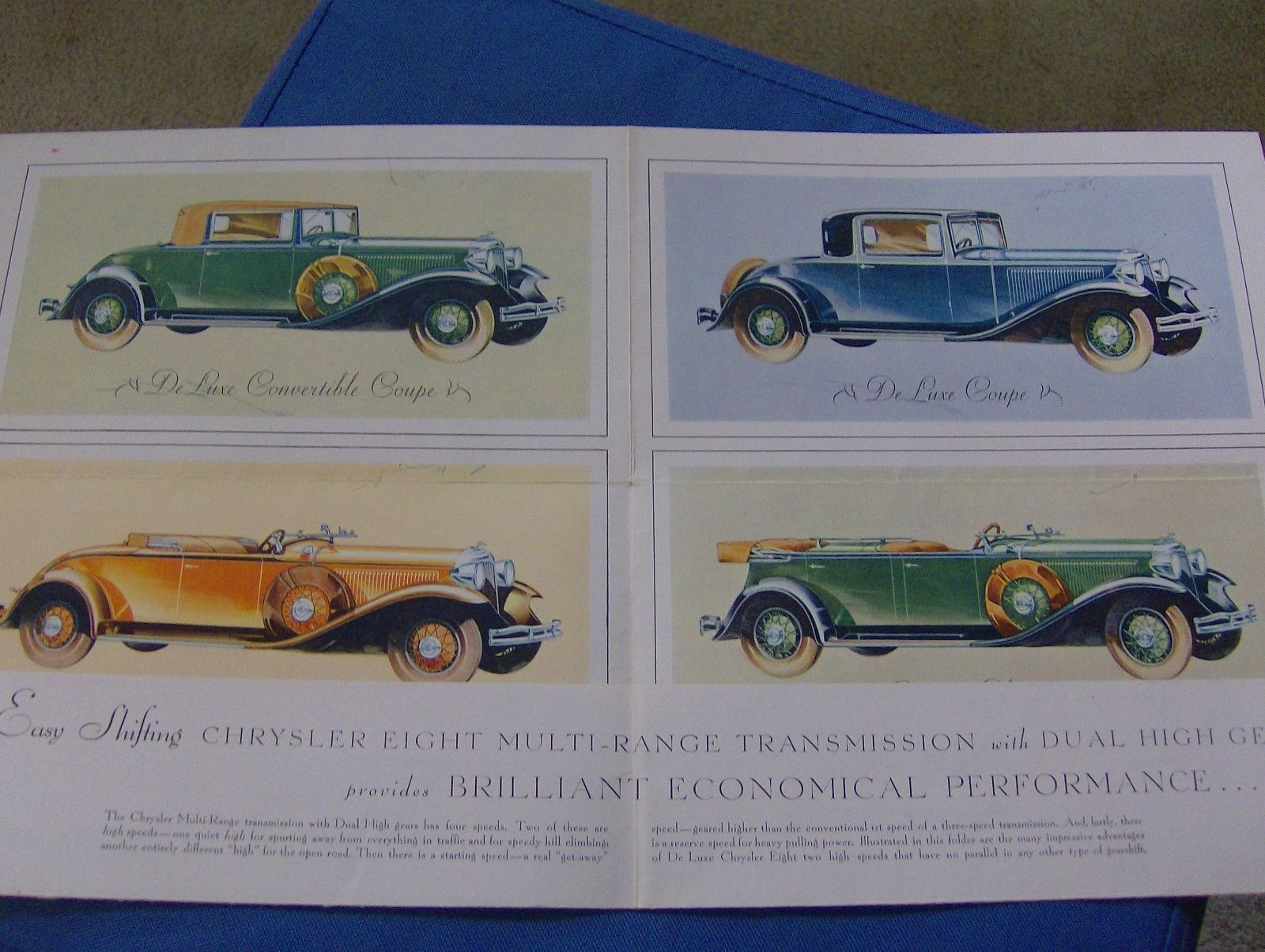 Title (ebay affiliate link): 1920''s 1930''s Chrysler Deluxe "8" Roadster Dealer Sales Brochure Folder
