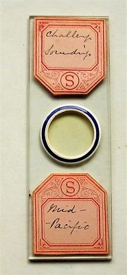 Title (ebay affiliate link): Antique MICROSCOPE SLIDE of CHALLENGER SOUNDINGS in Mid PACIFIC, "S" on label