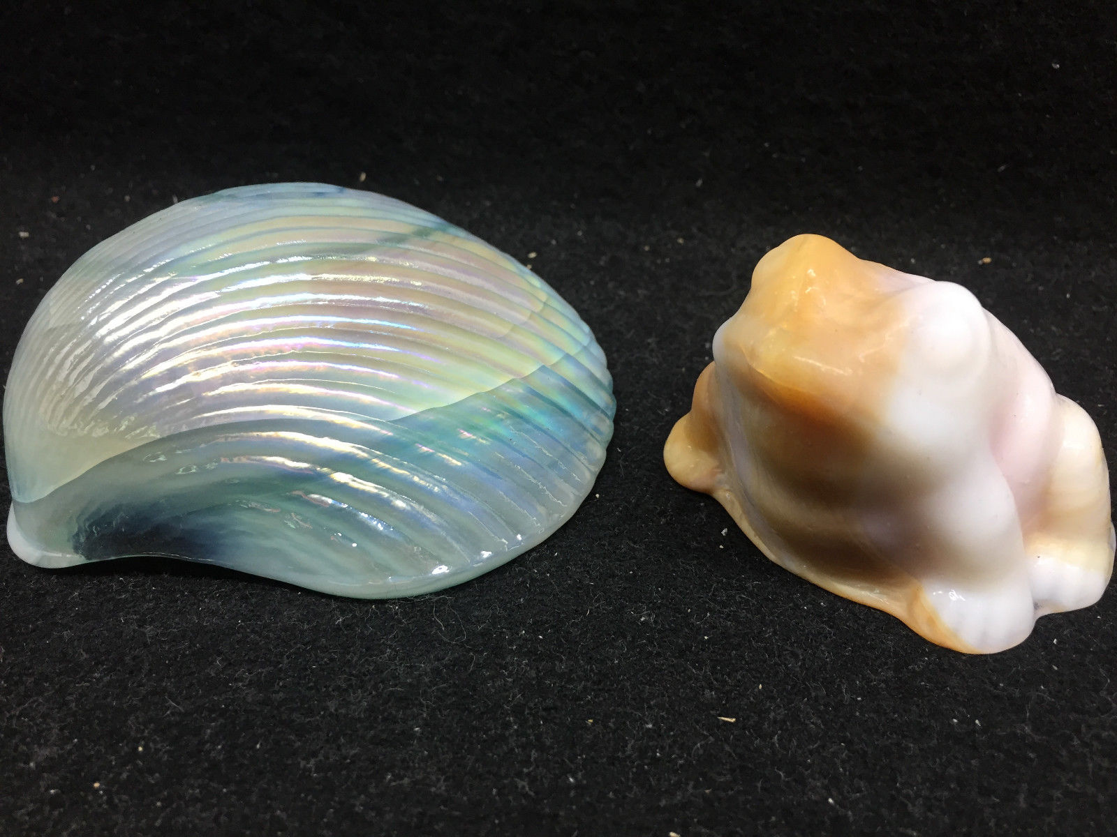 lot orange blue milk glass Frog / Toad Paperweight slag swirl white shell oyster