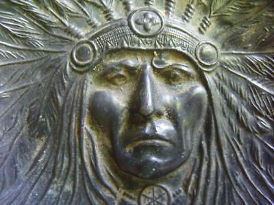 Small Primitive Antique Cast Metal Tray Native American Chief Image