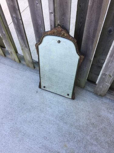 Vintage Antique Wall Mirror-Etched Flowers-Ornate Gold Frame