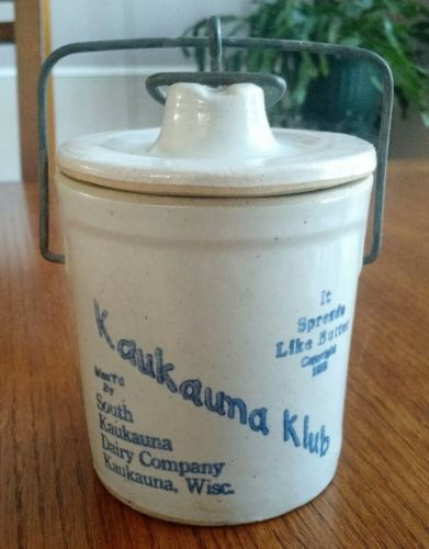 Title (ebay affiliate link): Vintage 1933 Stoneware Kaukauna Klub Wisconsin Cheese Crock W Wire Bail Lid