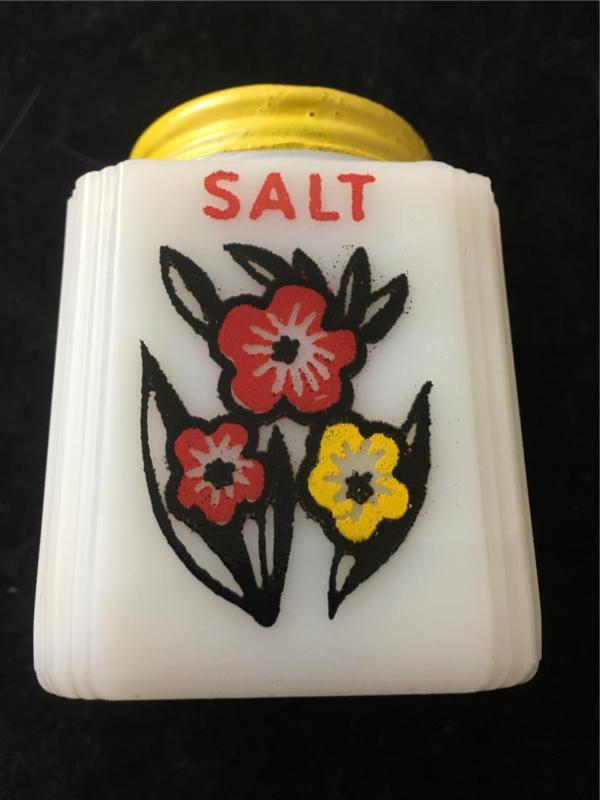 Tipp City Milk Glass Salt Shaker Floral Design Yellow Top