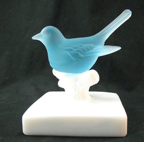 Vintage Westmoreland Satin Blue Glass Bird on White Milk Glass Branch