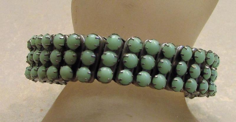 Title (ebay affiliate link): Vintage 60''s Chunky Milk Glass Bead Stretch Bracelet 3 Strand Signed Empire Made