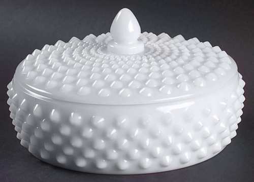 Title (ebay affiliate link): Fenton Milk Glass Hobnail 3880 MI Candy Vanity Covered Dish Mid Century
