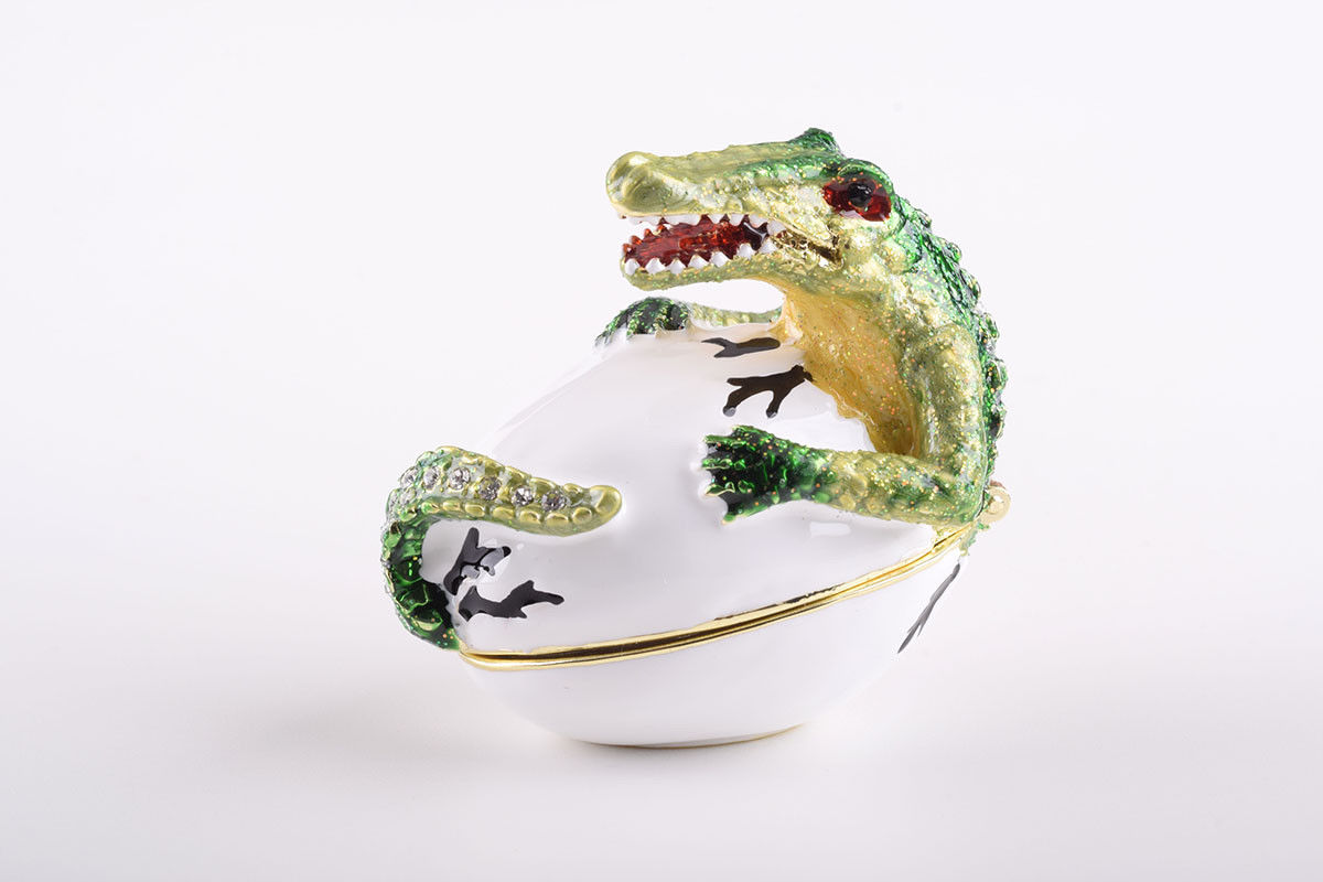 Faberge Crocodile trinket box hand made by Keren Kopal with Austrian crystal
