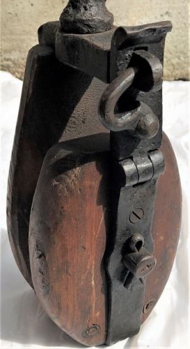 Title (ebay affiliate link): AAFA ANTIQUE WROUGHT IRON & WOOD BARN PULLEY BLOCK TACKLE NAUTICAL UNIQUE! NR!