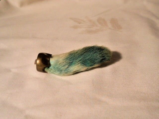Title (ebay affiliate link): Vintage Good Luck Rabbit''s Foot Keychain Green and White 2 1/4" Wide Metal Top