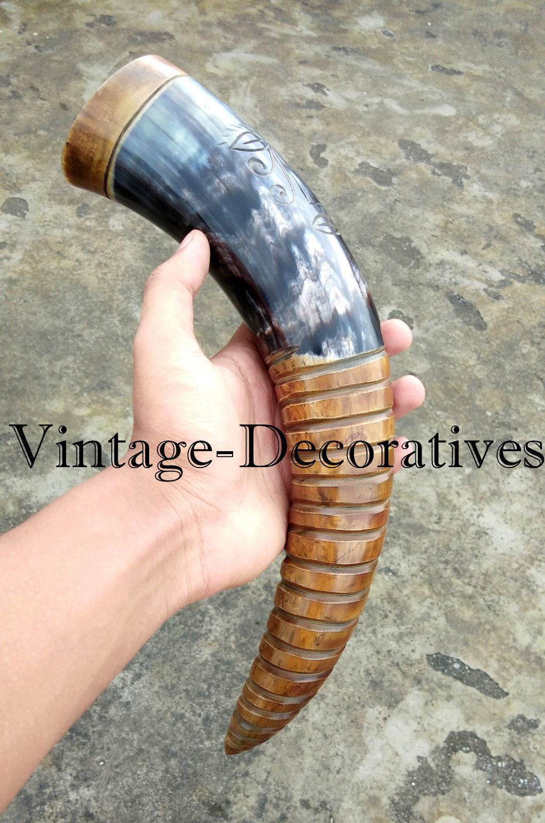 Title (ebay affiliate link): OX-Viking-Adorned-Beautiful-Drinking-Horn-Cup-Mug-Mead-Antique-Christmas Gift
