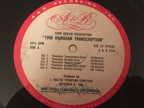 Title (ebay affiliate link): 1966 Ford Hawaiian Sweepstakes Promo Ads 12" Record