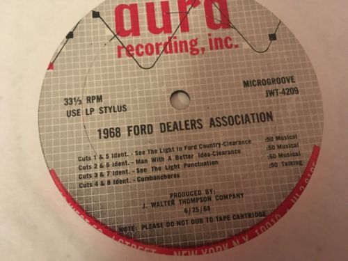 1968 Ford Dealers Radio Promo Ads 12" Record