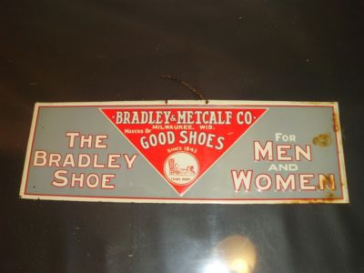 TIN EMBOSSED SHOE STORE HANGING SIGN Bradley & Metcalf