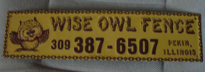 Advertising sign, Wise Owl Fence, 16" x4", dated 1978