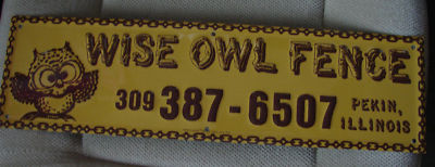 Advertising sign, Wise Owl Fence, 18" x 5", dated 1978