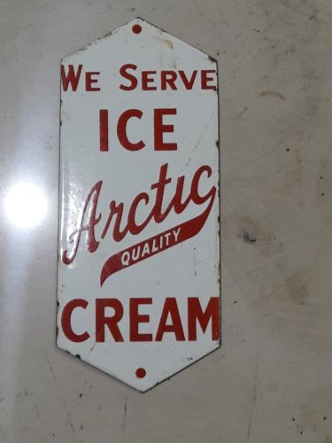 Title (ebay affiliate link): Porcelain Arctic ice cream enamel sign 4" X 8" Inches Approx.