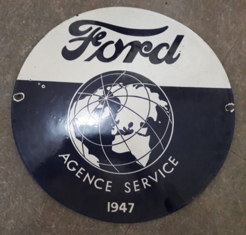 Porcelain 1947 Ford Agency Enamel Sign 6" Round