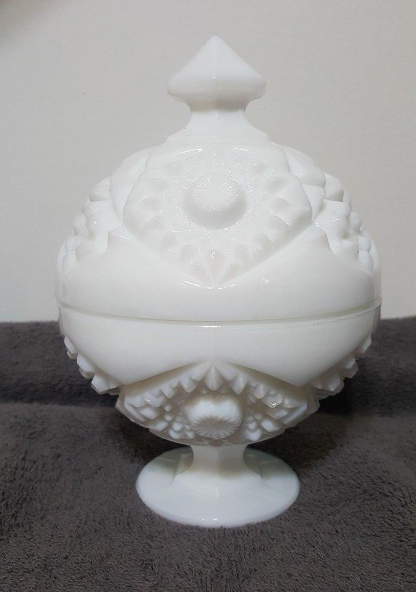 Title (ebay affiliate link): Vintage Heavy Solid Milk Glass Covered Candy Dish Compote 8 inch tall with Lid