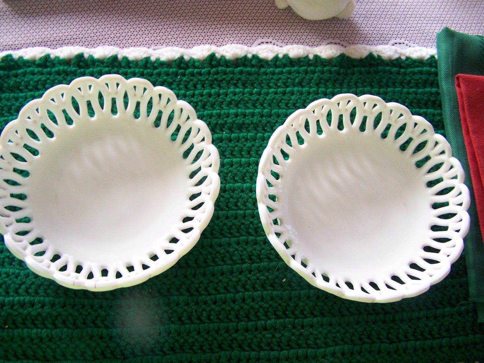 Title (ebay affiliate link): Vintage White Milk Glass Open Lace Lattice Edge Open Starburst Bottom Set of 2
