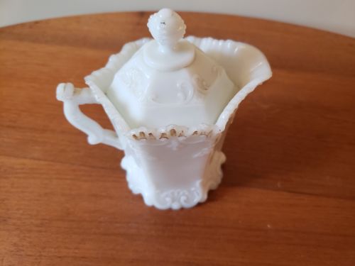 Antique Victorian Milk Glass Creamer Pitcher with Lid