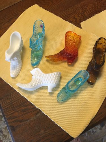Title (ebay affiliate link): Lot of 6 Vintage Fenton Cat Head Slippers/ Boot Shoes Milk Glass Daisy & Button