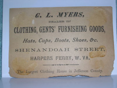 VICTORIAN TRADING CARD G.L. MYERS HARPERS FERRY, W.VA.