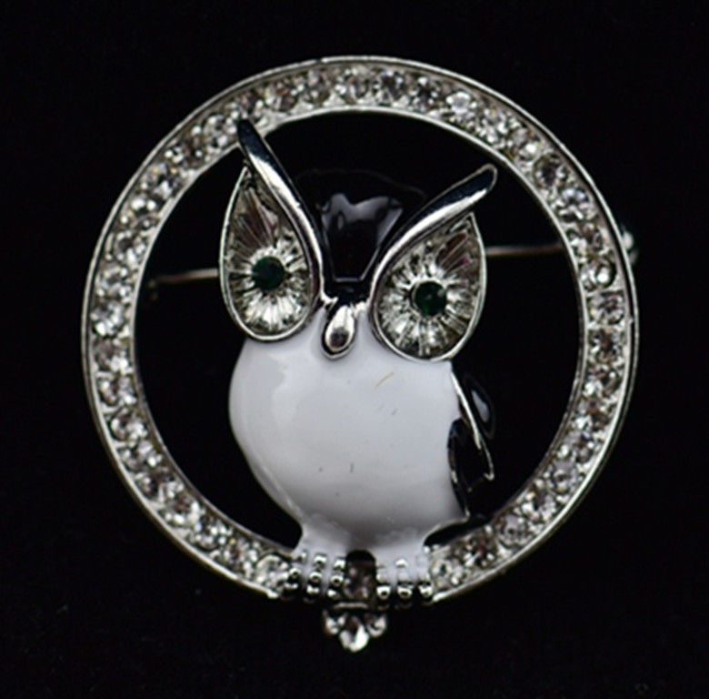 Antique Jewelry Brooch Crystal Enamel Jewelry Owl Upscale Brooch
