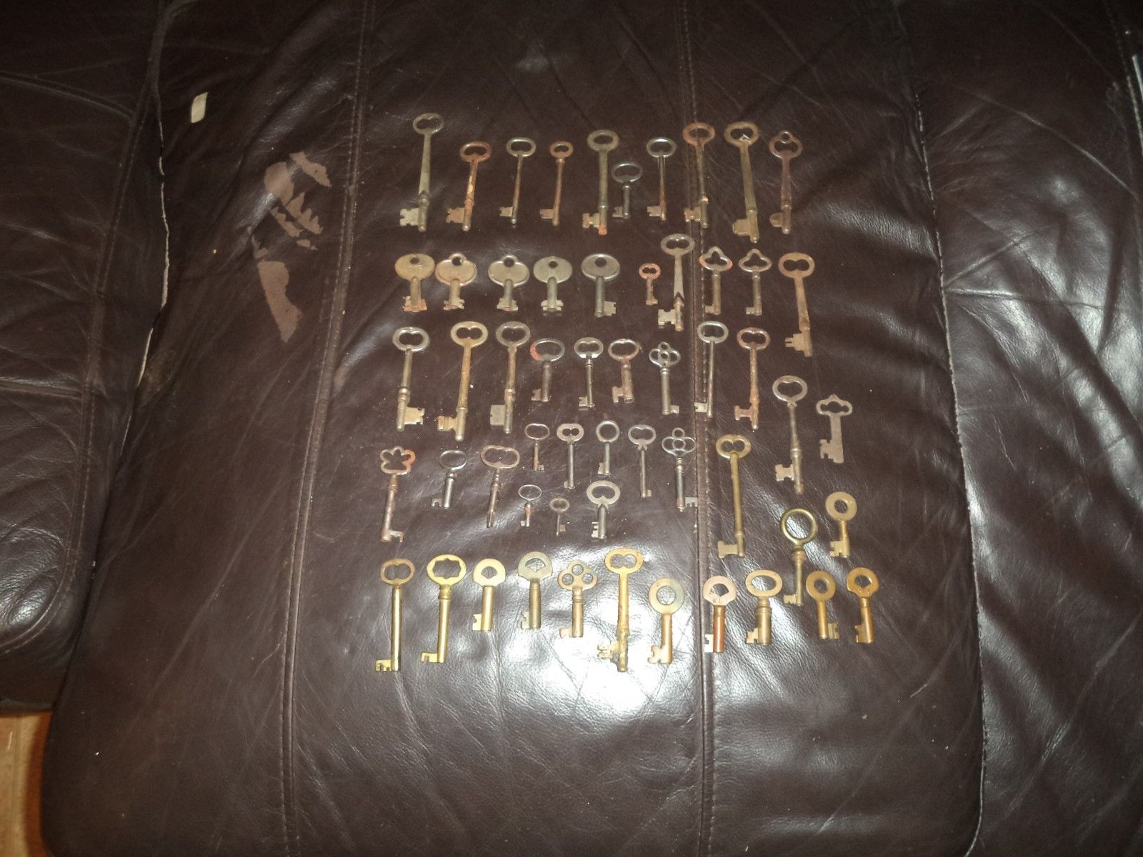 Antique Lot of 55 Keys Brass Skeleton Furniture Barrel Key Cabinet Hollow Barrel