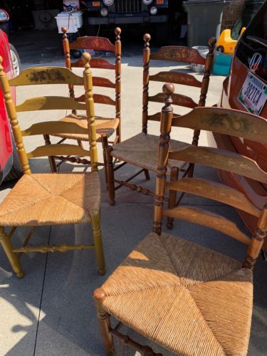Title (ebay affiliate link): SET Of 4 VINTAGE L. HITCHCOCK WOOD LADDERBACK SIDE CHAIRS WITH RUSH SEAT