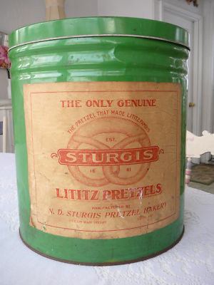 Vintage Large STURGIS Lititz Pa.Pretzel Tin Can