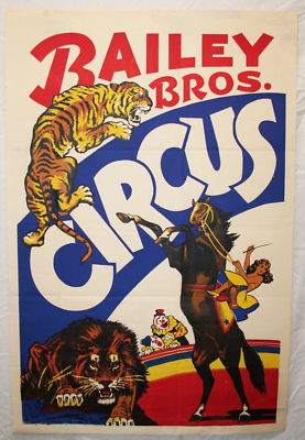 VINTAGE ORIGINAL BAILEY BROS CIRCUS POSTER NR