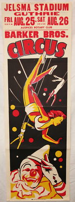 VINTAGE ORIGINAL BARKER BROS. CIRCUS POSTER NR