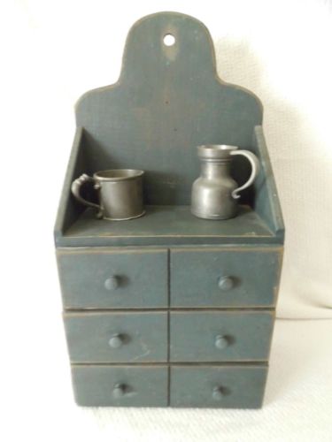 Title (ebay affiliate link): PRIMITIVE ANTIQUE/VINTAGE SPICE CABINET, SHELF, W/3 DRAWERS, ANTIQUE BLUE, 18"X9