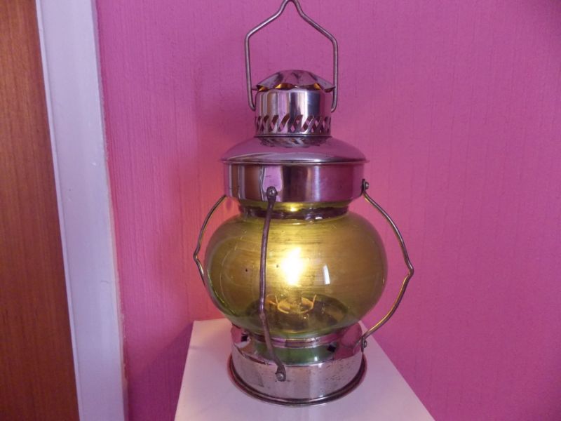 GREEN GLASS AND BRIGHT METAL OIL LAMP WORKING