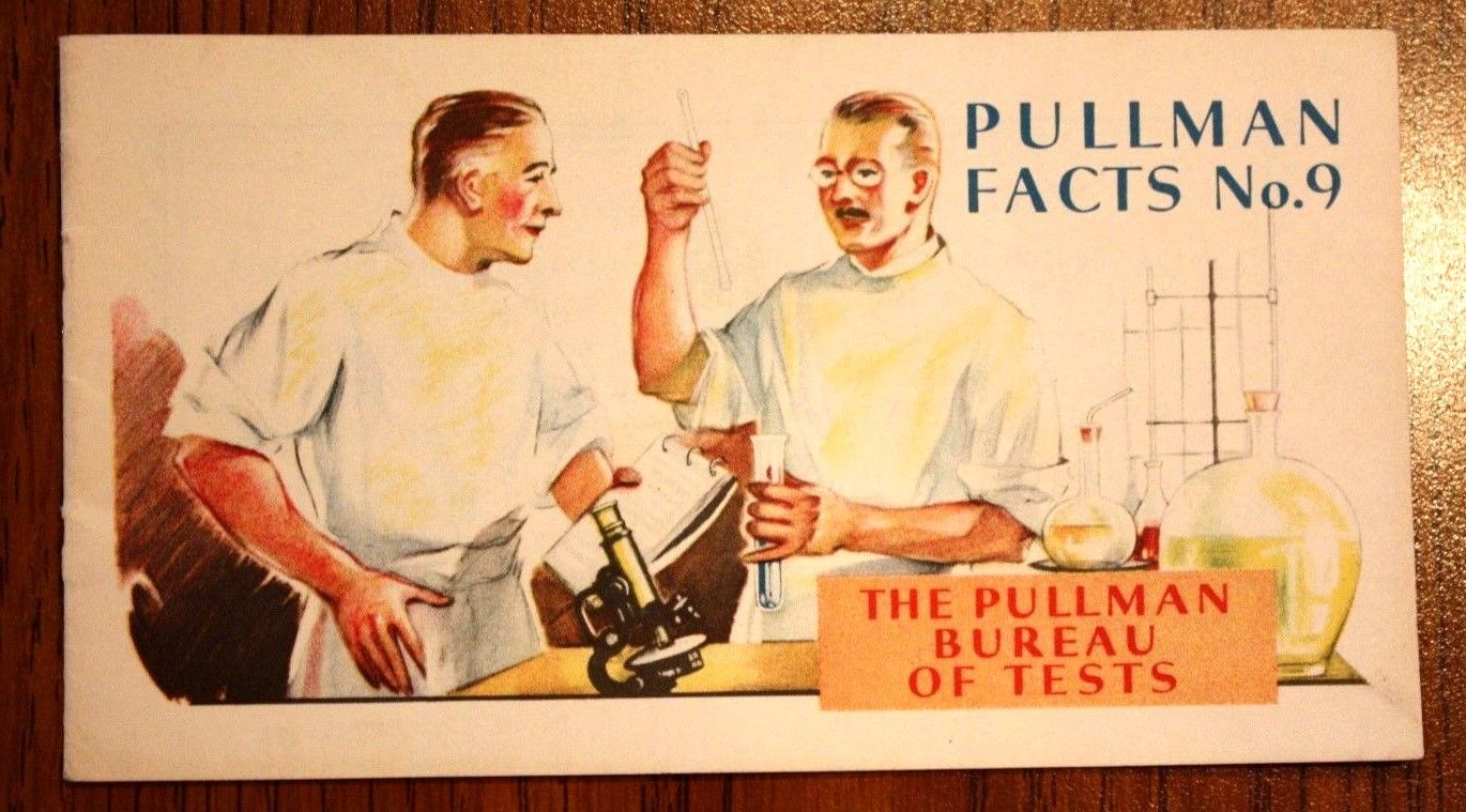 Title (ebay affiliate link): Pullman Railroad Facts Booklet #9 "The Pullman Bureau of Tests"