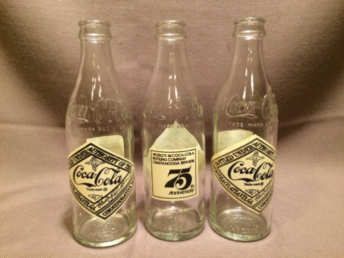 Title (ebay affiliate link): 3 Vintage Coca-Cola Bottles Atlanta 75th Anniversary 1974