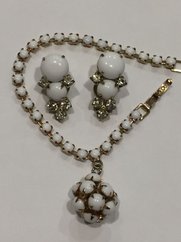 Title (ebay affiliate link): ESTATE ~ Vintage Rhinestone & Milk Glass Bracelet & Earrings
