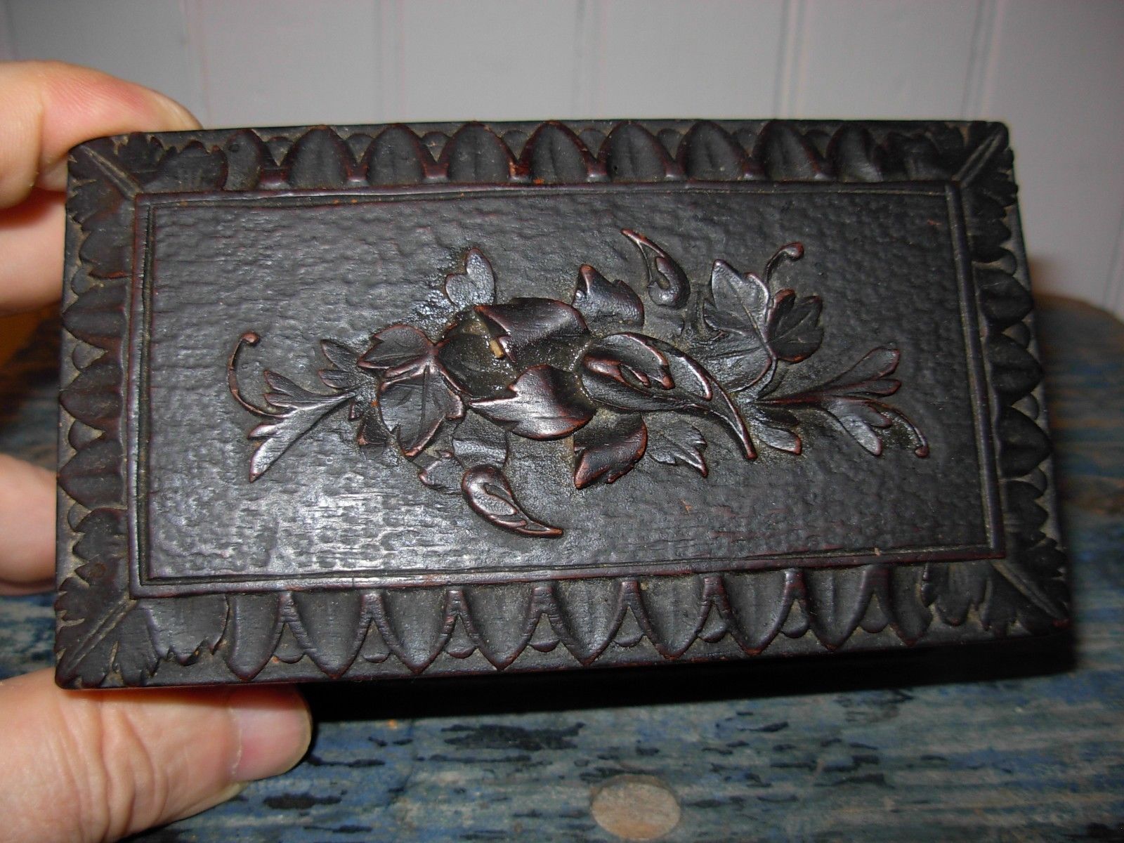 HANDCARVED GOTHIC KEEPSAKE BOX SILK LINED old-old NR