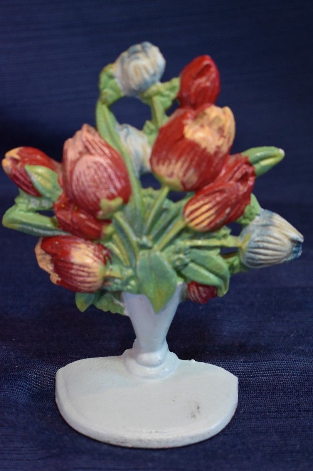 Title (ebay affiliate link): Beautiful Lillian Vernon Cast Iron Flower Vase Doorstop - 1980 - Excellent Cond!