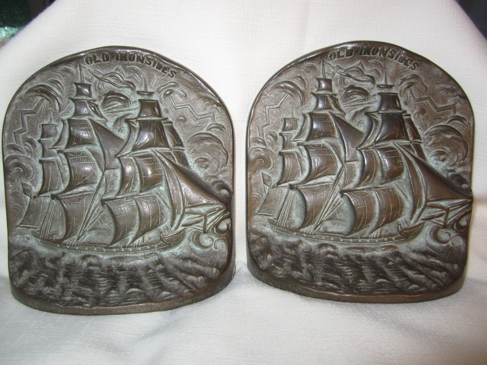 Title (ebay affiliate link): Antique Cast Bronze Bookends "Old Ironsides" - Pair - Excellent Condition!
