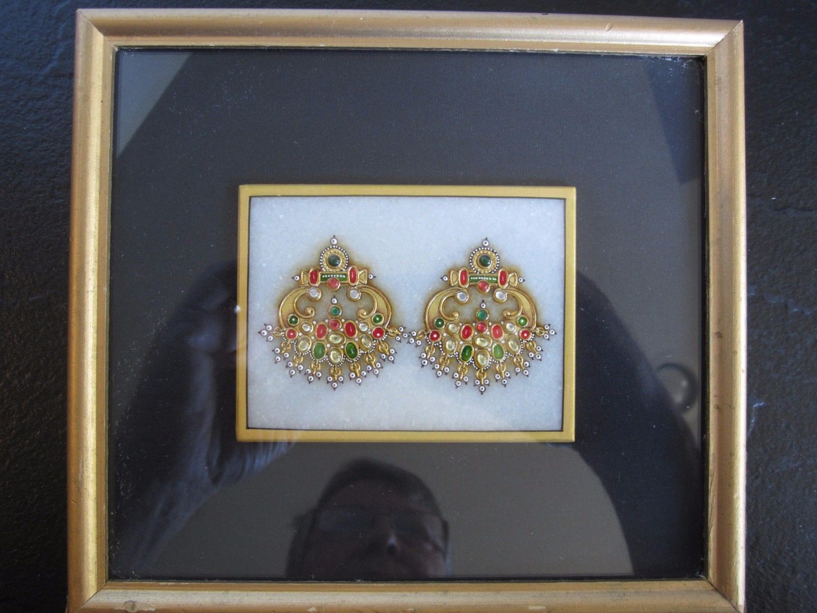Spectacular Jewelry Painted on Marble - Real Gold Meena - Excellent Condition!