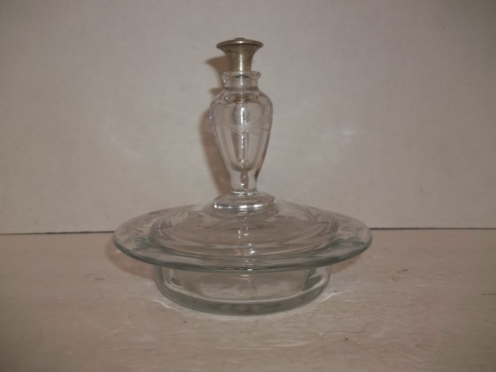 Title (ebay affiliate link): Vintage Art Deco Etched Glass Silver Perfume Scent Bottle Powder Box Jar Boxtle