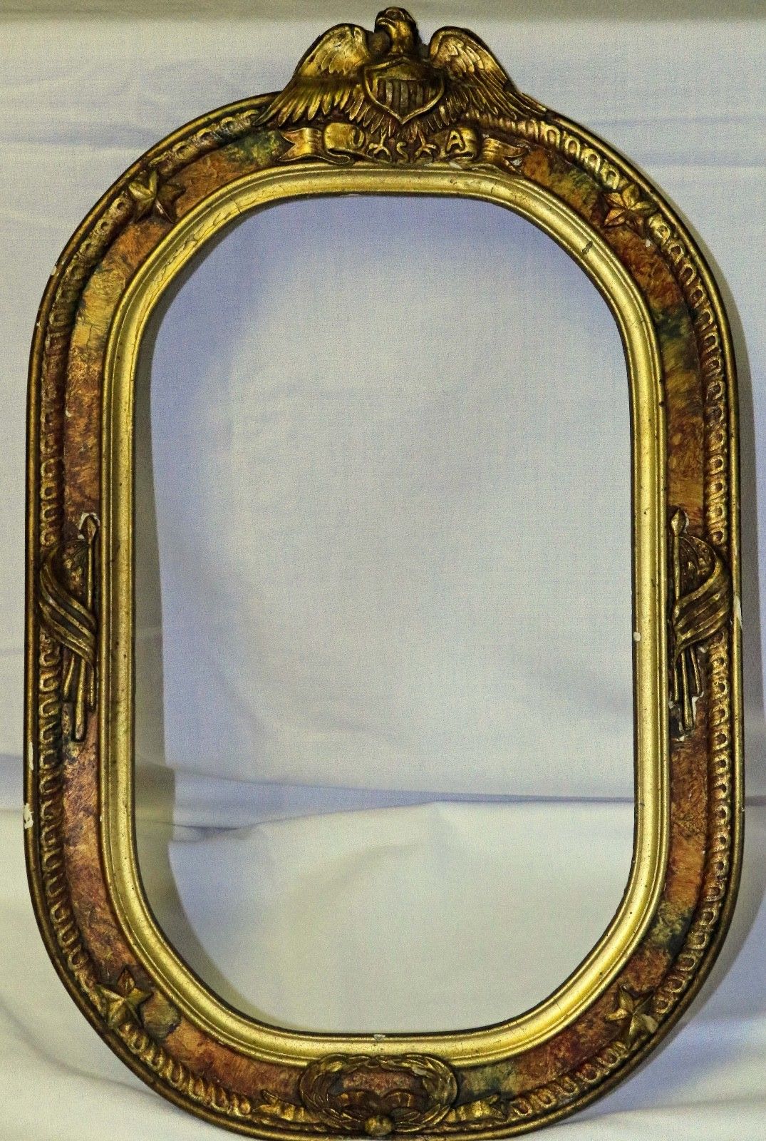 Title (ebay affiliate link): ANTIQUE PATRIOTIC OVAL WOODEN FRAME DECORATED W/EAGLE FLAG & USA PHOTOGRAPHIC