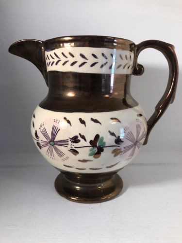 Title (ebay affiliate link): Vintage Antique English Copper Luster Hand Painted Creamer Pitcher Floral 6"